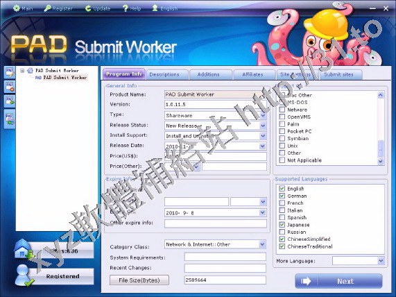 • PAD Submit Worker v1.2.4.1 英文正式版(軟體發佈工具軟體)