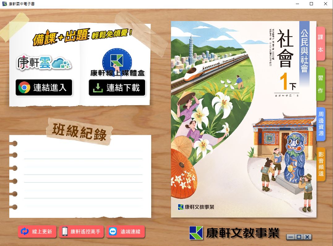111學年下學期 國中 康軒版 公民電子書 1年級(含課本、習作含解答、教學資源)教學光碟