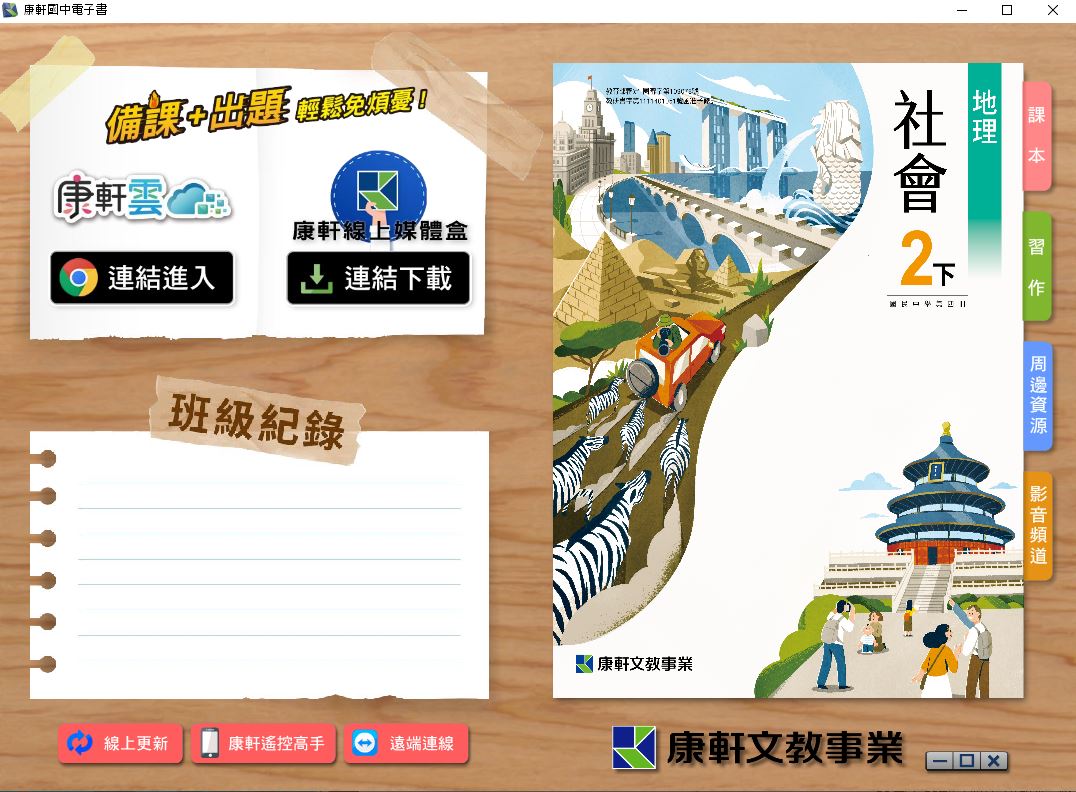 111學年下學期 國中 康軒版 地理電子書 2年級(含課本、習作含解答、教學資源)教學光碟