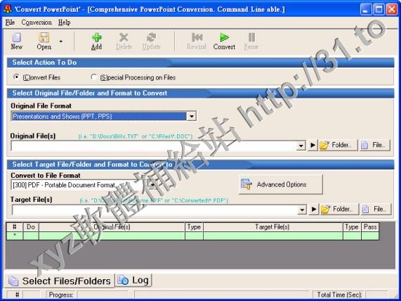 PowerPoint文件轉換工具,可以把PPT文件轉換成DOC, RTF, TXT, HTM, JPG, GIF, BMP, TIF, PNG,