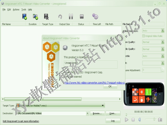 KingConvert HTC 7 Mozart Video Converter v5.3 英文正式版(高清視頻轉換器軟體)