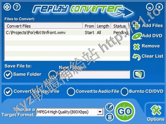 Replay Converter是一款非常容易使用的音頻和視頻轉換工具。你簡單挑選轉換文件,選擇